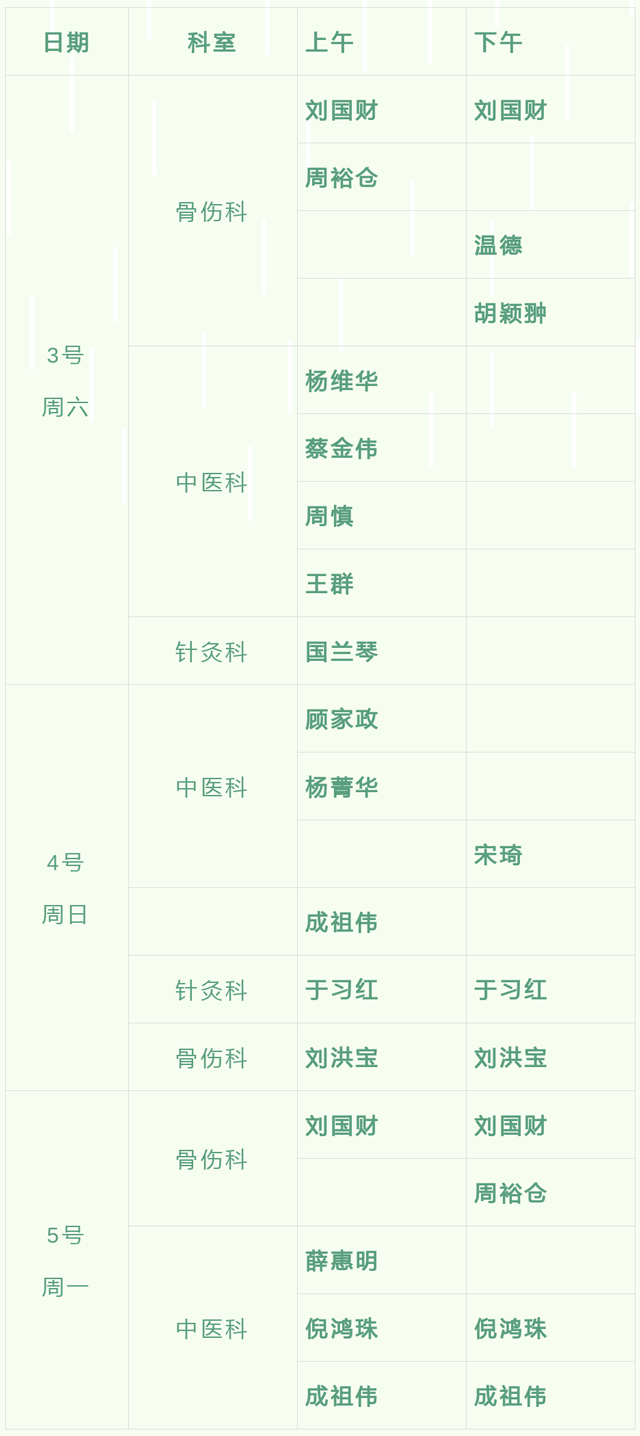 注:上午(8:00-11:00) 下午(13:30-15:00)