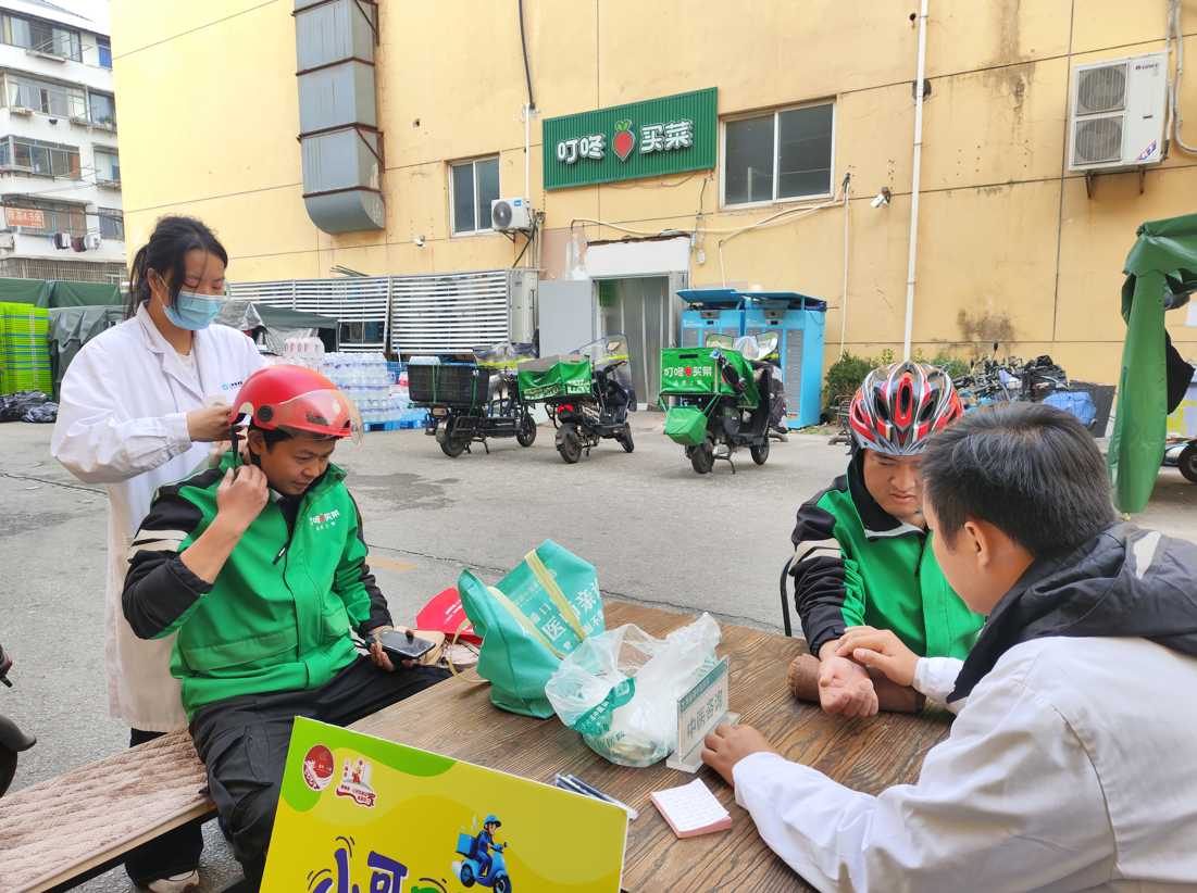 “這些小哥年紀輕,看起來身體挺結實,但長期騎行、送貨,很多人有肩頸不適、胃口不好、容易著涼等問題。”徐浦中醫醫院的中醫師一邊貼敷一邊說,“我們根據他們日常的工作強度和常見癥狀,給出了一些針對性的敷貼方案。”
